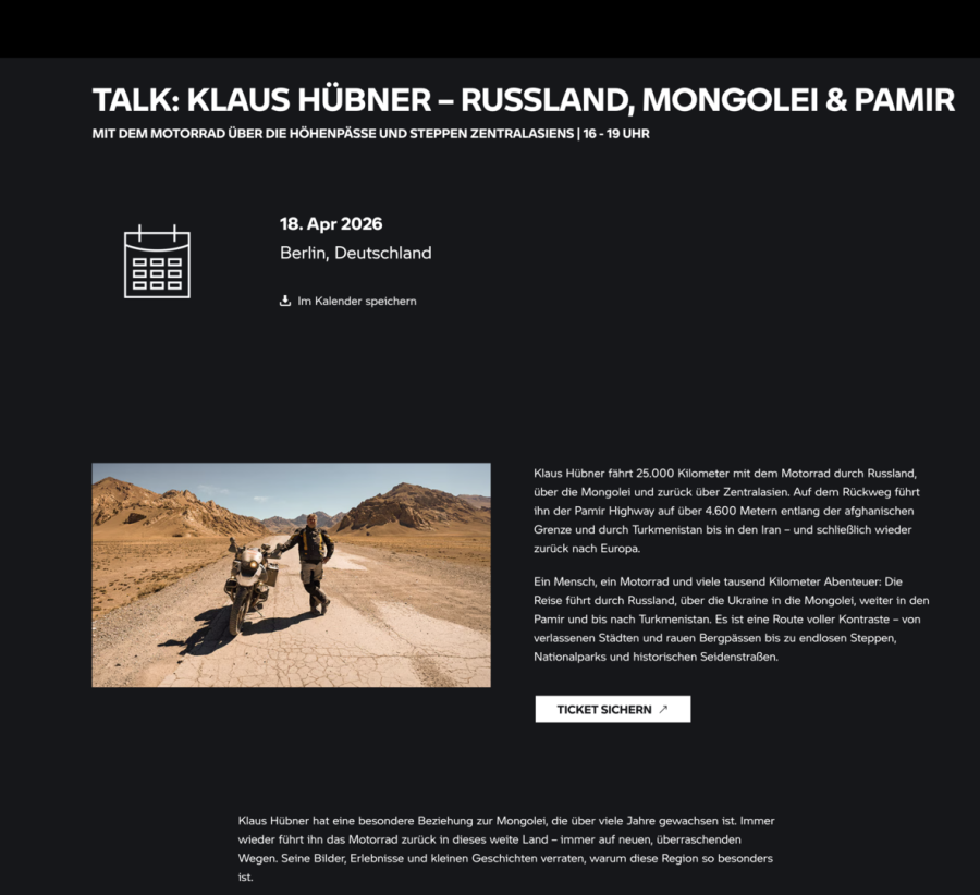 Und auch Infos zu Seidenstrasse, Samarkand, Buchara, Khiva, Pamir Highway, Dushanbe, Osh, Bishkek, Mongolei Nordroute, Altai, Terelj, Tsaagan Nur, Erdene Zuu, Schwarzes Meer, Kaspisches Meer, Fähren, Teheran, Täbriz, Novosibirsk, Baikal, Teth, Vermosh, Ohrid See, Kotor, Skhoder, Durres, Githio, Transfaragash, Sibiu, Kappadokkien, Tschernobyl, Honda Transalp, BMW 1150 GS, Navigation, OSM Karten, Garmin Basecamp, und vieles mehr....